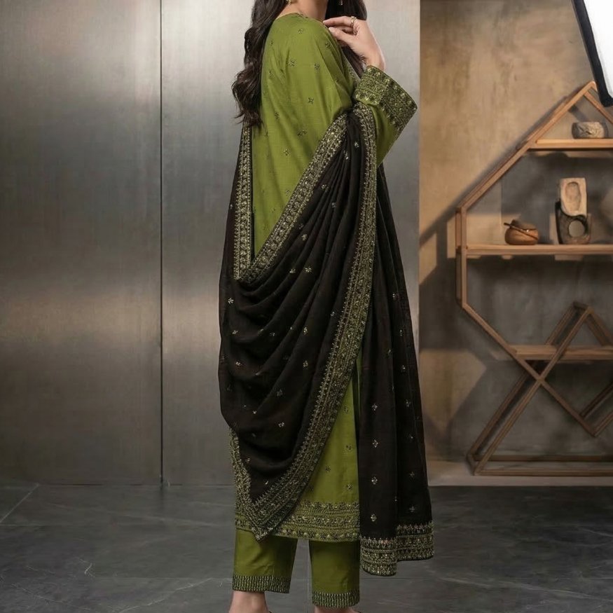 Celebrate in style with our latest Vibrant Green Embroidered Linen Collection. Specifically designed for the modern Pakistani woman, this outfit balances traditional craftsmanship with the breezy comfort required for summer festivities, weddings, and Eid gatherings.